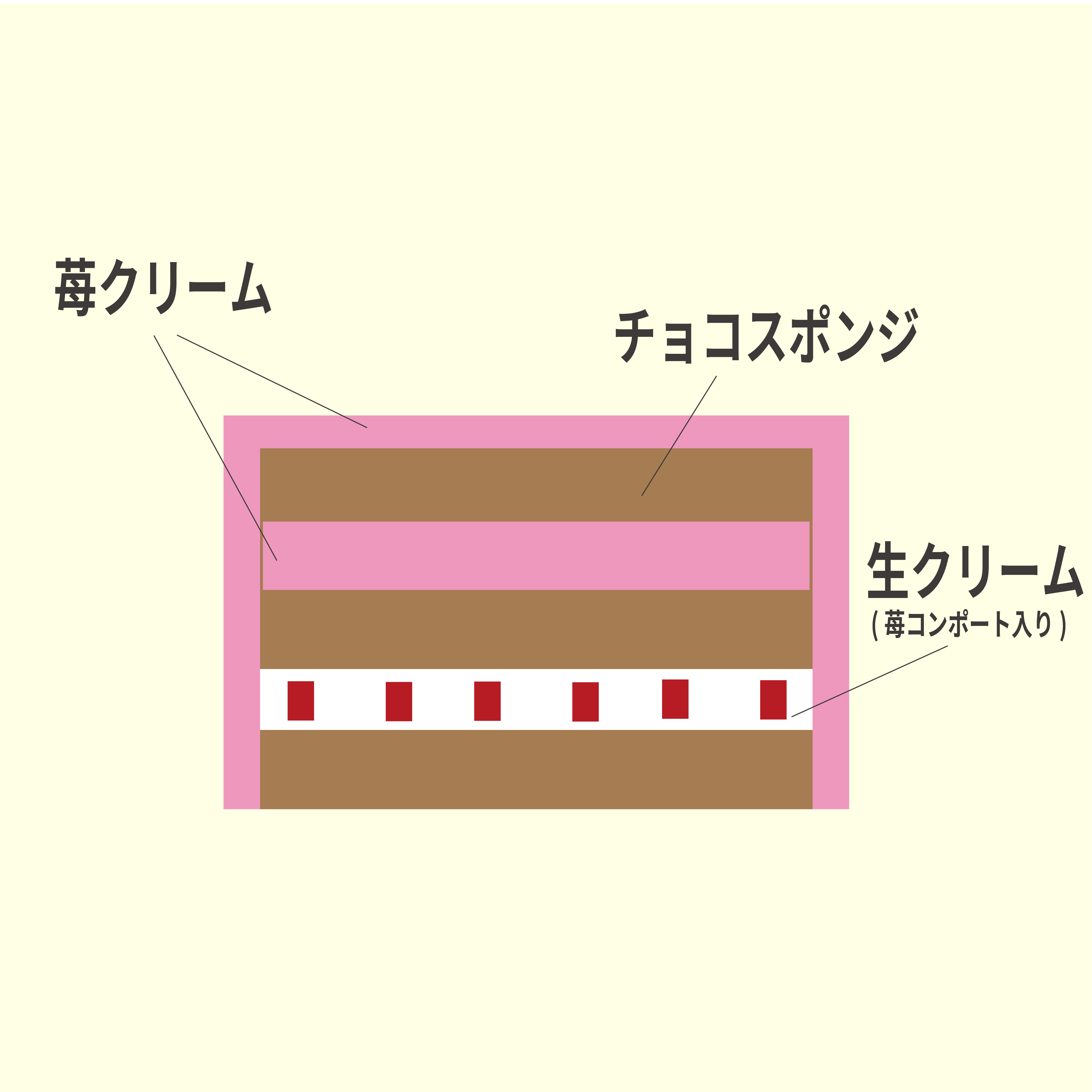 チョコスポンジに苺クリームと苺コンポート入りの生クリームを2層にサンドし、苺クリームで可愛くデコレーションしました。アイシングクッキーが魅力です。 ※アイシングクッキーは別途お渡しさせて頂きます。