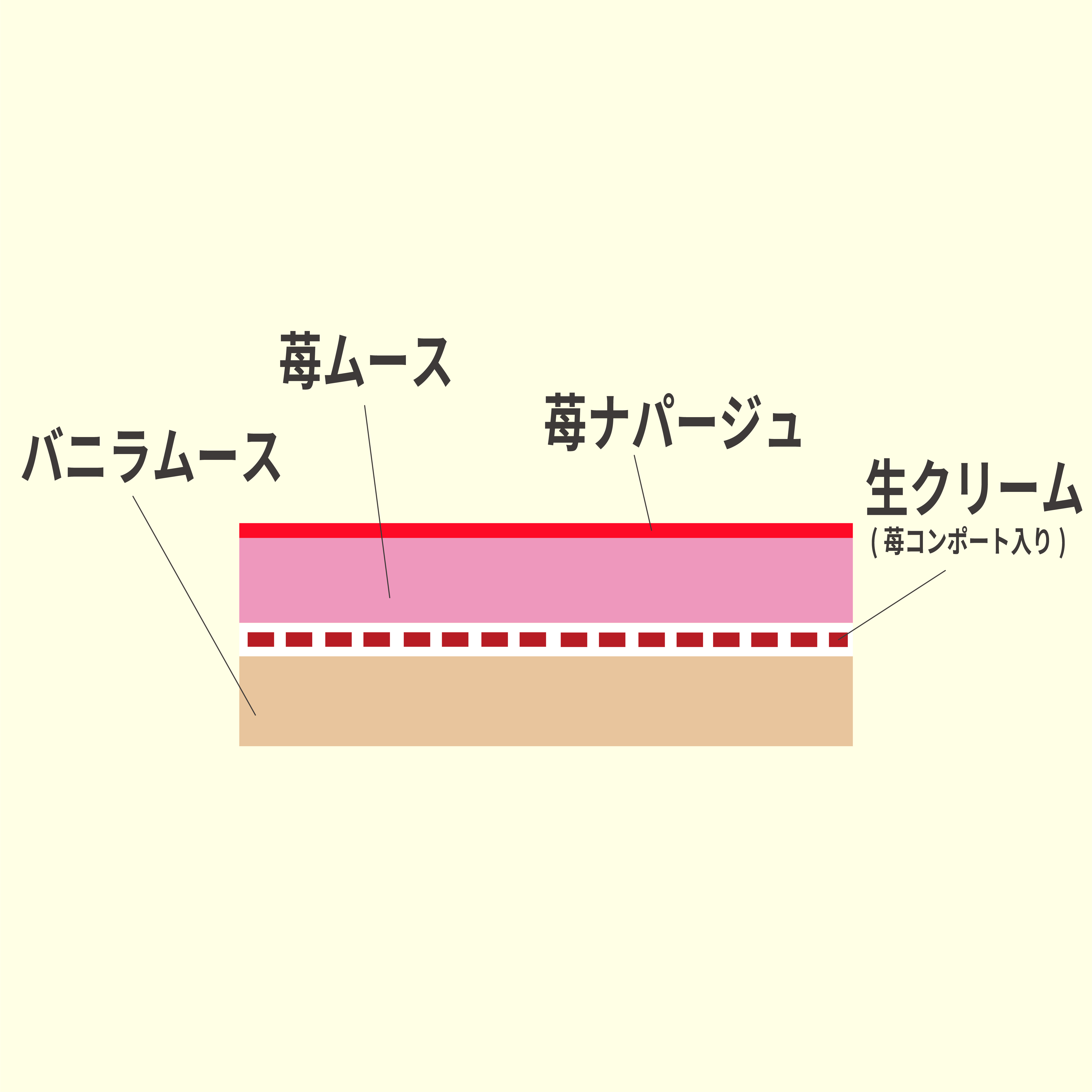 フレッシュな苺ムースに優しい甘さのバニラムースの2層にし、中に苺のコンフィチュールwお入れたかわいいクリスマスケーキです。